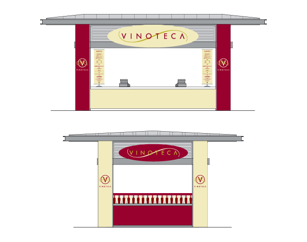 Wine and hors d'oeuvres kiosk concept design for the U.S. Tennis Open featuring a variety of food and drink pairings.